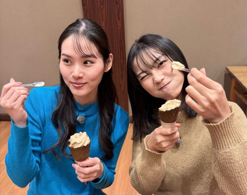 銚子駅を出発した2人は、さっそく仲ノ町(なかのちょう)駅で途中下車。歩いて3分の醤油工場へ。しょうゆ味わい体験館では、「ききみ体験」に挑戦。「減塩しょうゆ」「生しょうゆ」「丸大豆しょうゆ」の味くらべができるんですって!2人の好みは…同じだったかしら!?