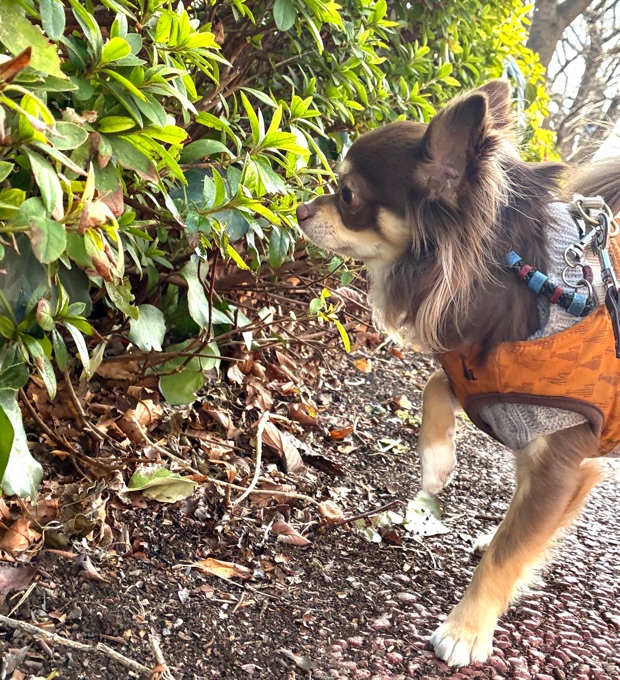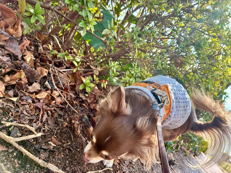元気そうだし、外はあったかそうだから、久しぶりのプチ散歩。